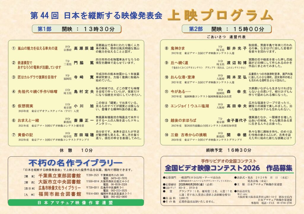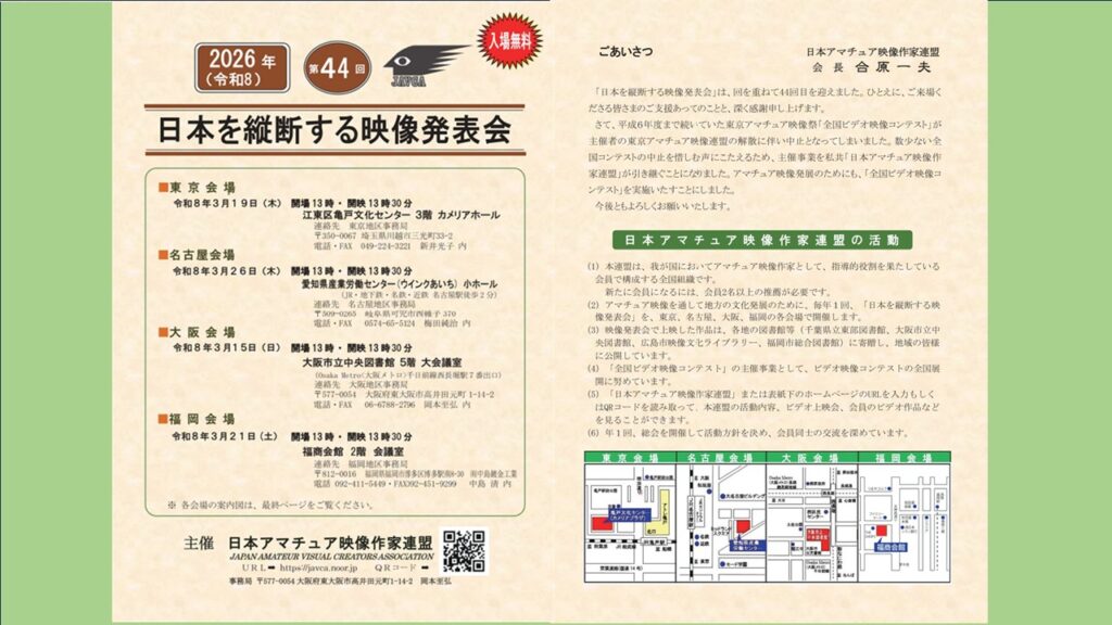 3月18日(火) 第43回日本を縦断する映像発表会12:30  13:00  東京都江東区亀戸文化センター3Fカメリアホール