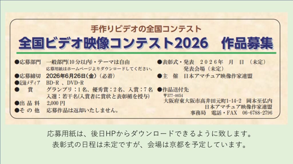 上記の● 賞 の入賞:7名は入賞:若干名に変更。応募用紙は4月頃に掲載する予定です。応募締切は2026年6月26日(金)です。