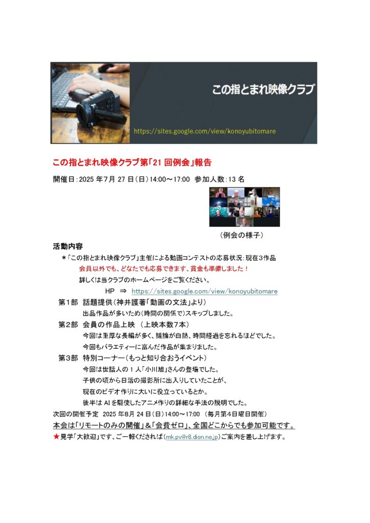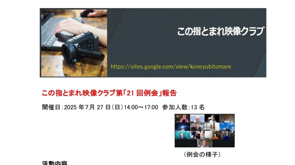 この指とまれ映像クラブ 第21回例会報告