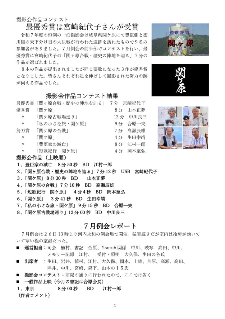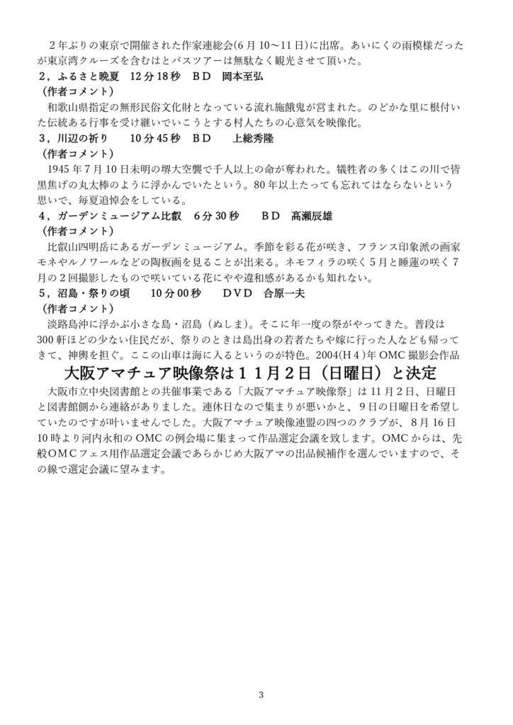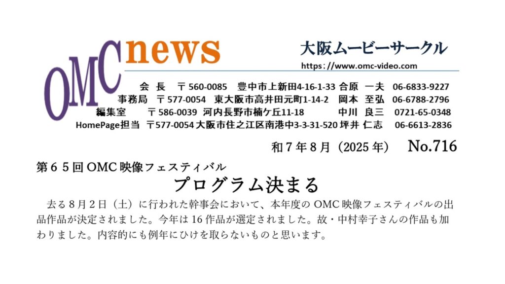 大阪ムービーサークル(OMC)7月度 例会報告
