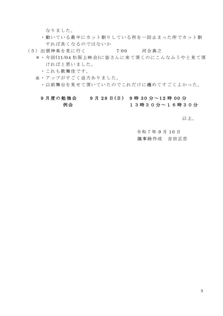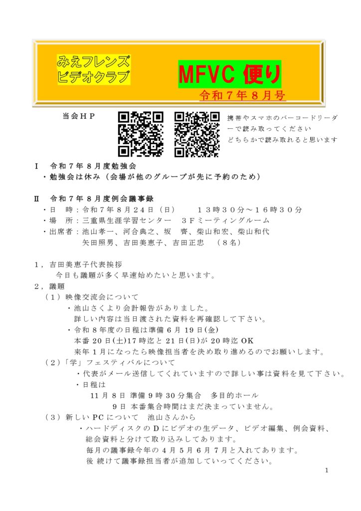 みえフレンズビデオクラブ 8月度 例会報告