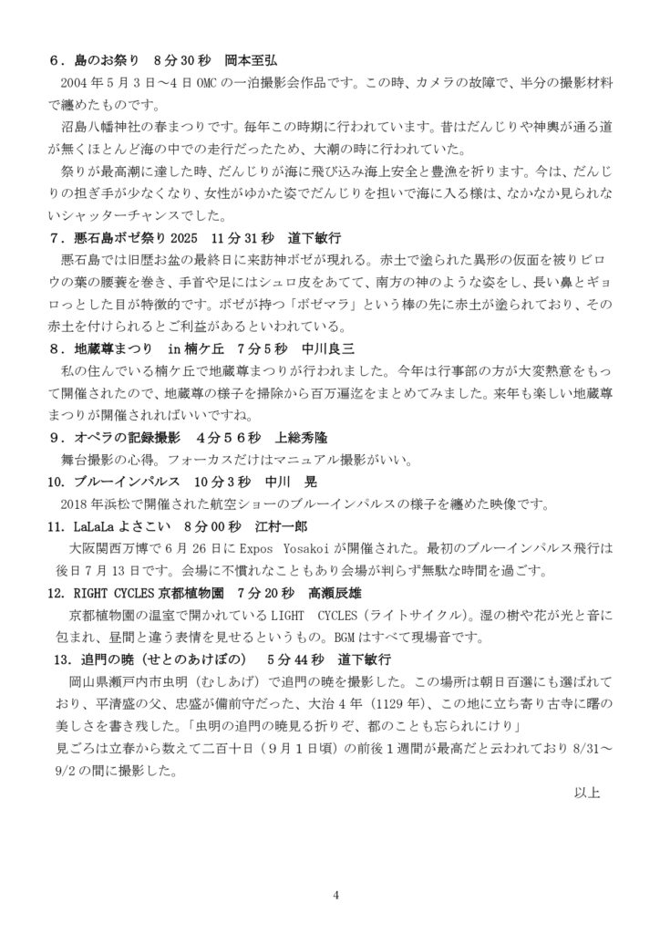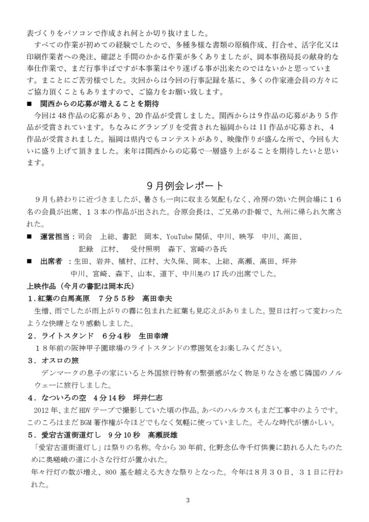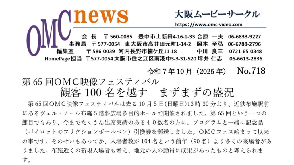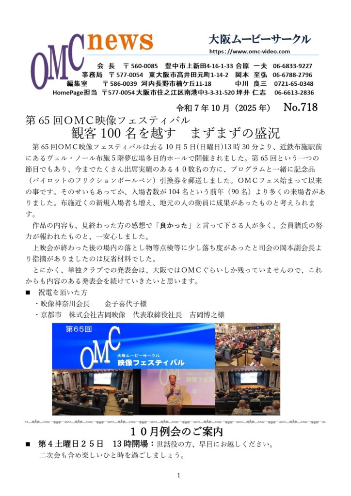 大阪ムービーサークル(OMC)9月度 例会報告